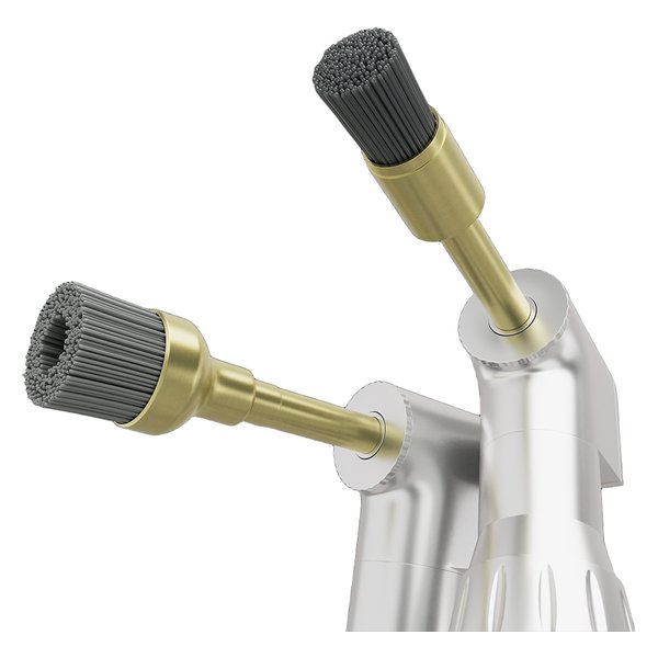 A escova é ideal para polir superfícies de resinas compostas, metais e materiais cerâmicos.