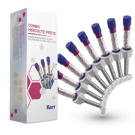 O Kit de Resina Herculite Précis da Kerr é a solução completa para o dentista que busca excelência em restaurações estéticas e duradouras. Trazendo a evolução da consagrada marca Herculite, esta resina nanohíbrida universal combina um manuseio superior com um resultado óptico impressionante, permitindo a criação de restaurações imperceptíveis em dentes anteriores e posteriores.