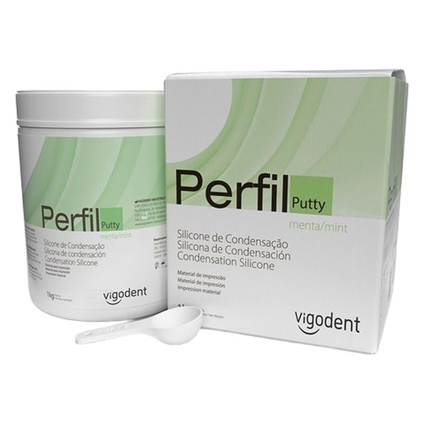 O Silicone de Condensação Perfil Denso 1kg da Vigodent é um material odontológico de excelência, projetado para proporcionar moldagens precisas e confortáveis, destacando-se por seu aroma de menta que facilita o manuseio e oferece alta recuperação elástica.